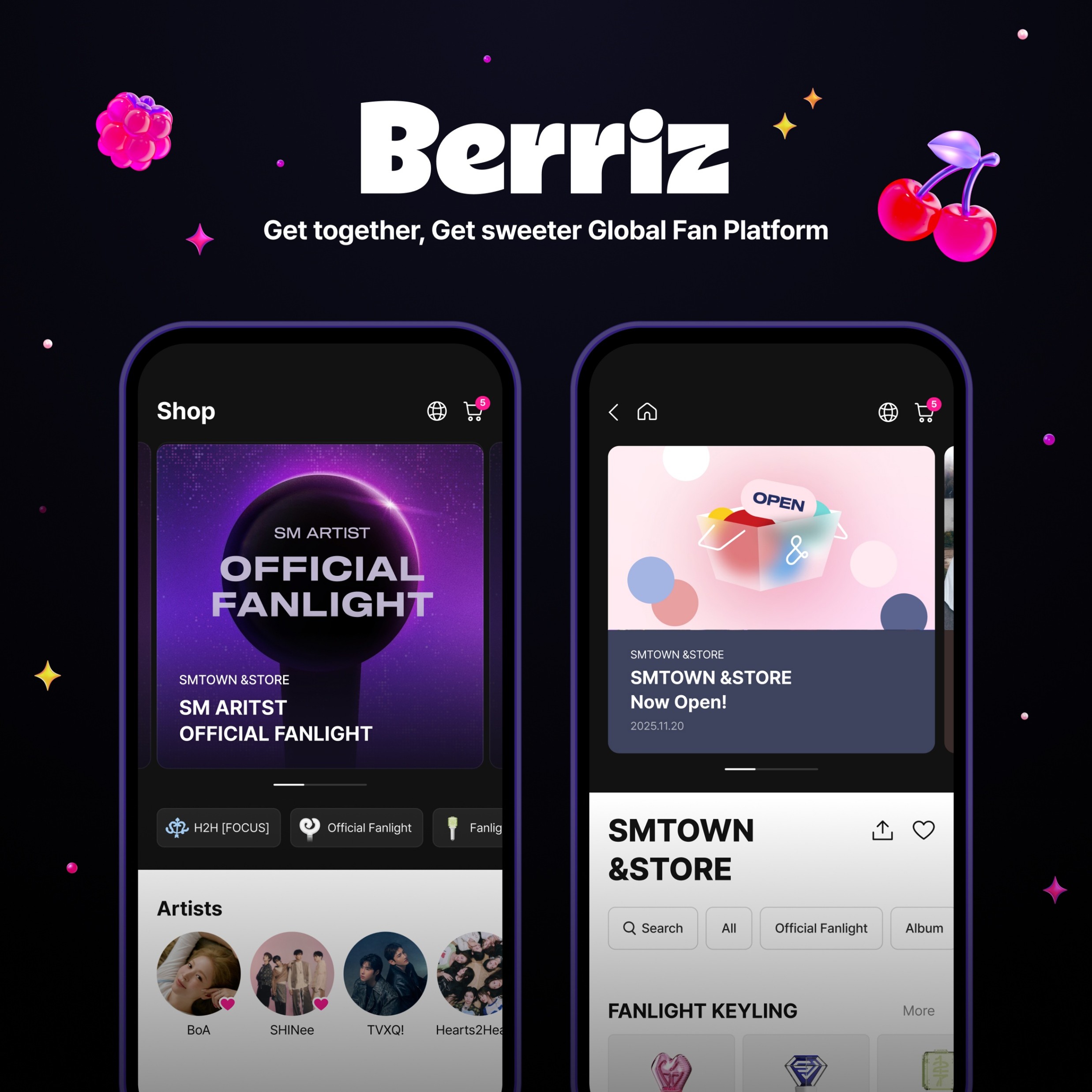 Berriz is a global K-culture fan platform that brings together fans of all kinds of K-culture IP from artists and creators to dramas, films, webtoons and musicals. It is a new playground where they can interact closely with their beloved K-pop stars via livestreams, chat with lifelike AI personas modeled after their favorite drama characters, and explore witty keywords generated from their own comments. With the introduction of Berriz Shop, the platform plans to deliver a differentiated commerce journey in addition to its fandom experience.