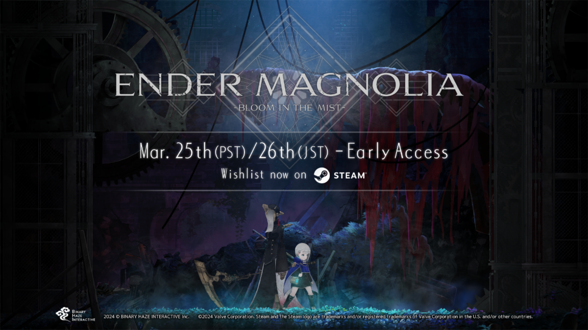 ENDER MAGNOLIA – Bloom in The Mist – will arrive on PC via Steam Early Access on Monday, March 25th at 8AM PST / Tuesday, March 26th at 12AM JST, followed by PlayStation 4|5, Xbox Series X|S and Nintendo Switch in 2024 with language options in Japanese, English, French, German, Italian, Spanish, Portuguese, Russian, Chinese (Simplified & Traditional), and Korean-language support.