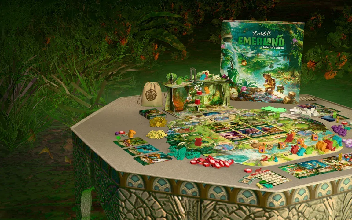 While Starling Games is keeping the deeper gameplay details under wraps for now, the campaign clearly positions Emerland as a full standalone experience – not an expansion – built on the core Everdell foundation that players already love. Worker placement, tableau building, and seasonal progression return, but the team emphasizes that Emerland will bring new mechanics and ideas unique to its jungle setting.
