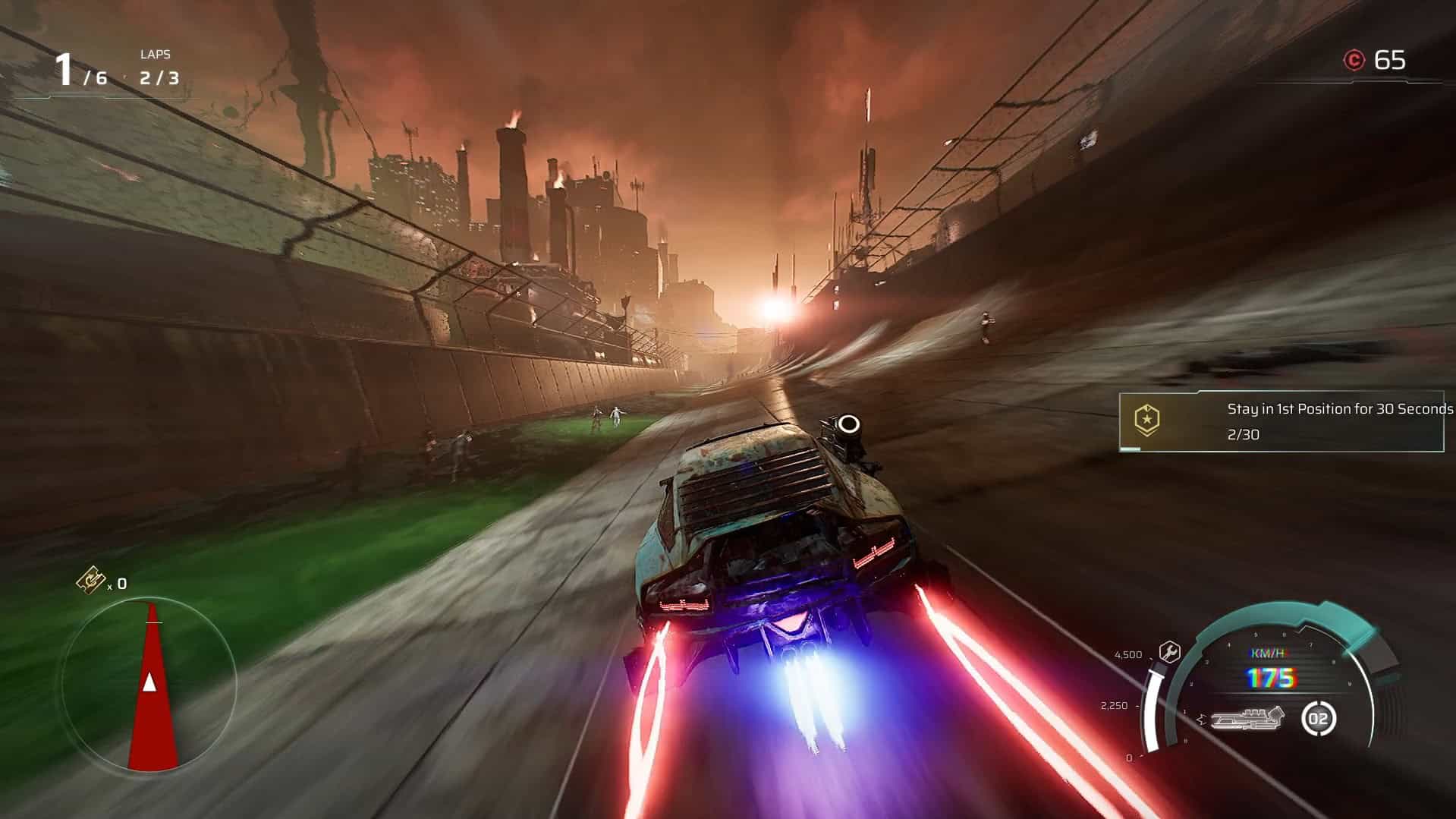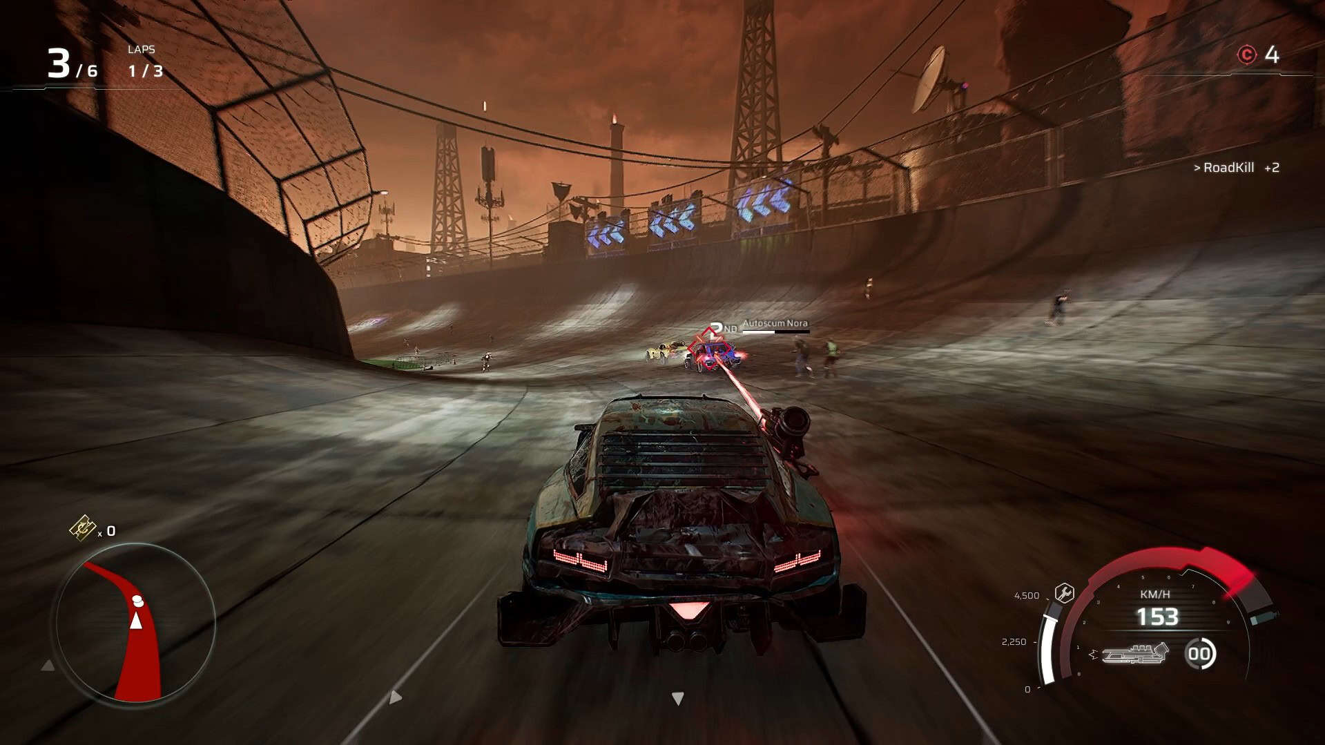 The progression track is not linear, which is nice. Along the way, the path will split, giving you up to three options for your next race. Some of these options give you the traditional goal of completing three laps, some only require one lap, and some can require as many as six laps. Each race has different objectives, too. For instance, one might ask you to kill 50 people along a track, and some might ask you to destroy a certain number of enemy drivers. Most of the normal tracks will have a primary objective of placing in the top 3 at the end of a race; however, there are Elite Races which will require you to finish in first place, and do so in only 1 lap! Obviously, you’ll want to complete these objectives for extra currency rewards at the end of the race.