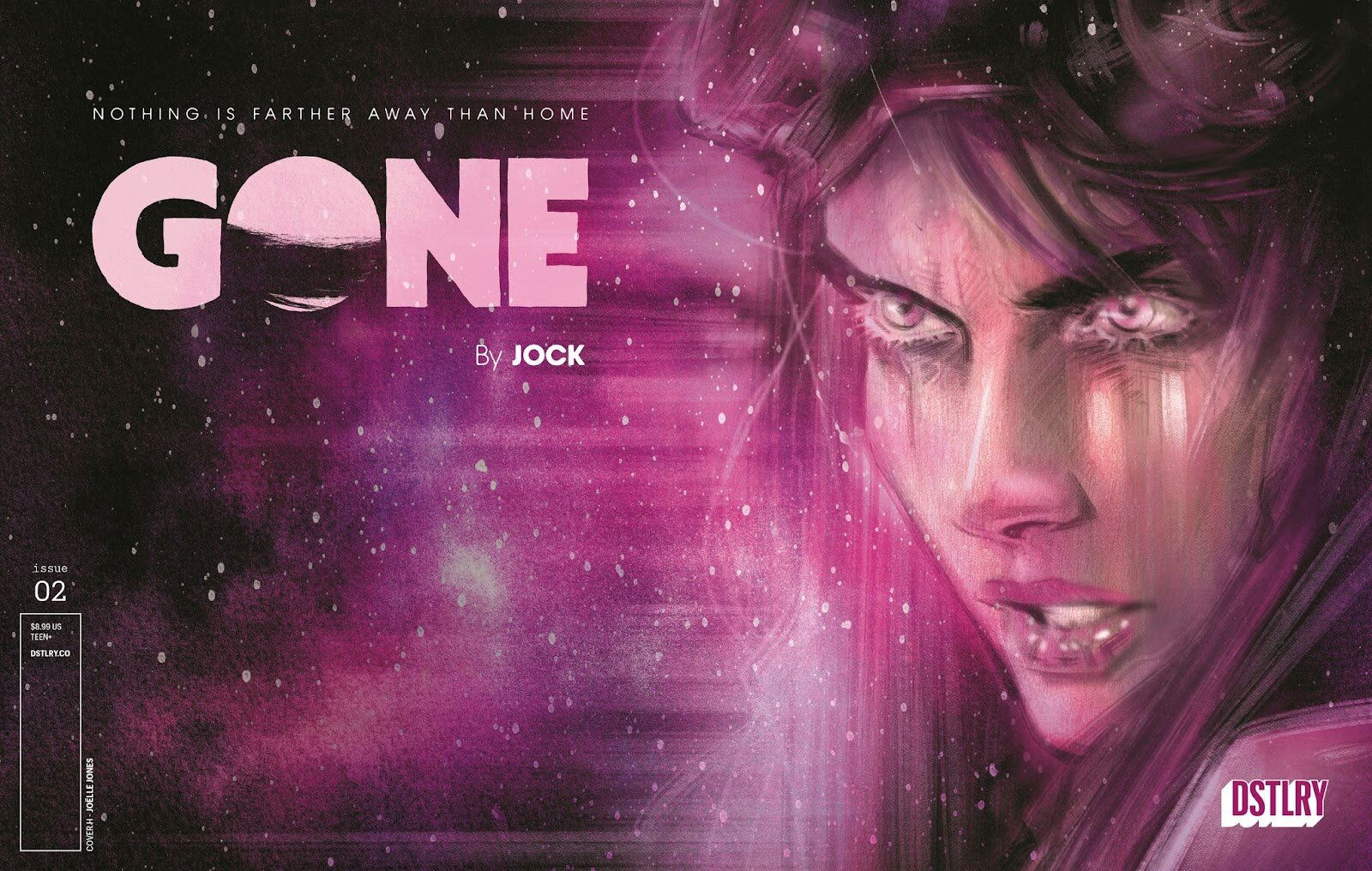 The second issue of DSTLRY’s action-packed sci-fi series GONE is out today from Jock, featuring dstlry.co-exclusive variant covers by Ben Oliver (Vengeance of Vampirella, Ultimate X-Men), Joëlle Jones (Lady Killer, Catwoman), and Dani (Dark Spaces, Coffin Bound) that will leave readers starstruck.