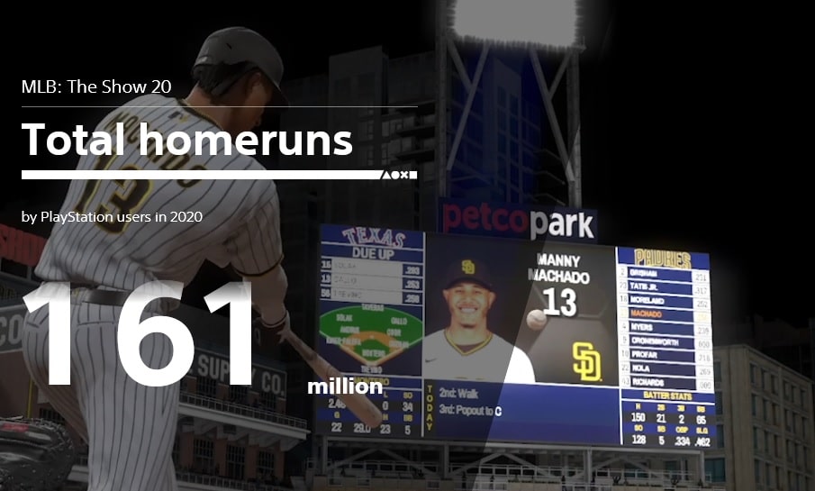 The final general statistic from PlayStation comes in the form of home runs hit in MLB: The Show 20. 161 million dingers… notbad.jpg