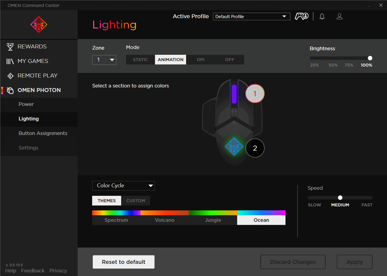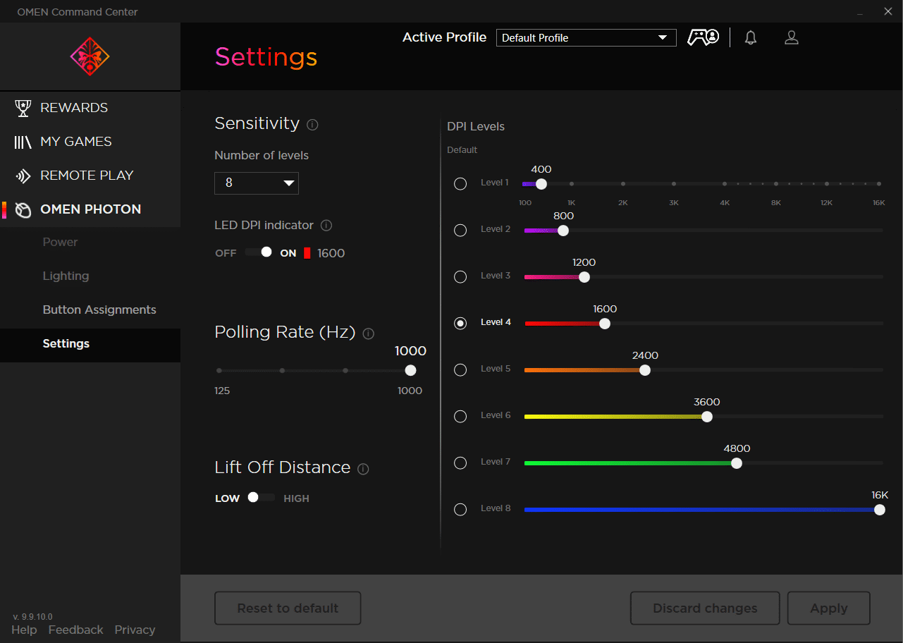 While the Photon is notable, it’s in combination with the OMEN Command Center that it shines. As the name suggests, this software provides a variety of options to enhance your time with the mouse. Upon opening up the app, you’re able to check on the power levels, charging time, adjust or disable the RGB lighting, button assignments, and DPI settings. On the later note, you can also change the default DPI settings with your values, or even change the levels of sensitivity. Something which I appreciated.