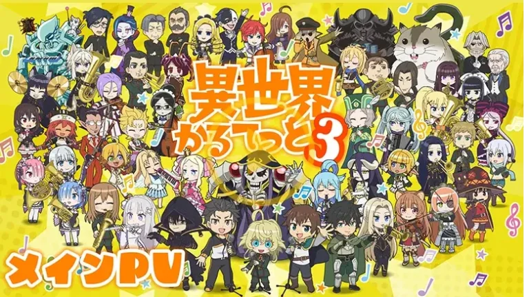 The release date wasn’t the only reveal; both the opening and ending themes for the third season were unveiled as well. Satoshi Hino, Jun Fukushima, Yūsuke Kobayashi, and Aoi Yūki perform the third season’s opening theme song titled Isekai Concerto. The ending theme song is titled Kimi Iro, Boku Iro and is performed by Konomi Suzuki and Kashitaro Ito.
