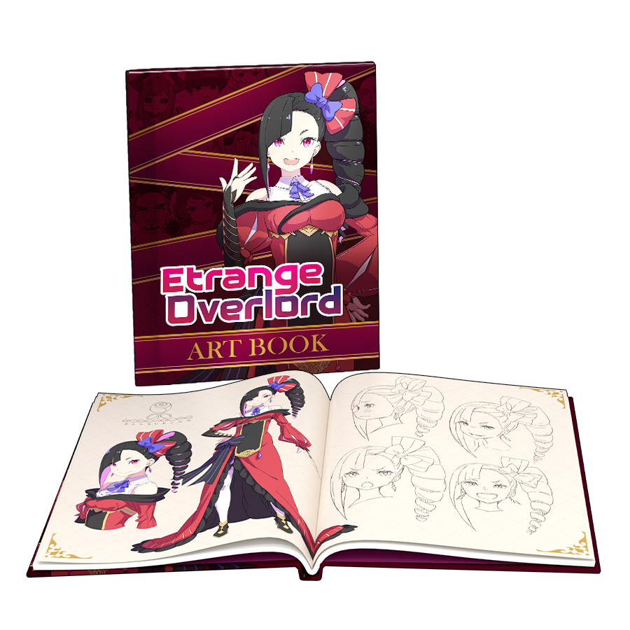 I am most interested in the art book and the acrylic stand from this offering. A lot of the focus of this material seems to be on Étrange von Rosenburg, the character who goes to hell and finds the cast of characters to help her become overlord.