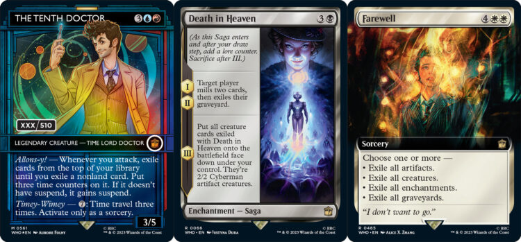 Each card with Doctor’s companion is a legendary creature. In Commander games, you may have two commanders if one of them is a card with Doctor’s companion and the other is “The Doctor.” That means a legendary Time Lord Doctor creature with no other creature types. So, one of the incarnations of the Doctor from the Doctor Who™ decks and not a legendary creature with changeling. Sorry, Morophon . We see right through you.