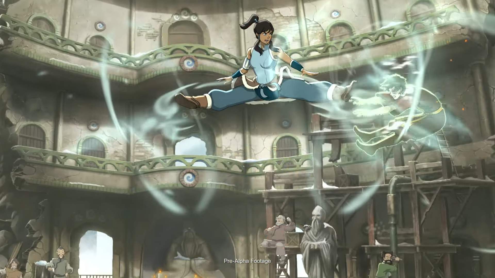 There seems to be some sort of super jumps here. A dodging mechanic can be seen in the fights that avoid moves. Korra does this during her fight with Ang. Safety Rolls are a thing, too. Korra releases an Ultimate move near the end. No real gauges or actual fight UI can be seen here. Each avatar’s beast is present during their fights to cheer their masters on, possibly.