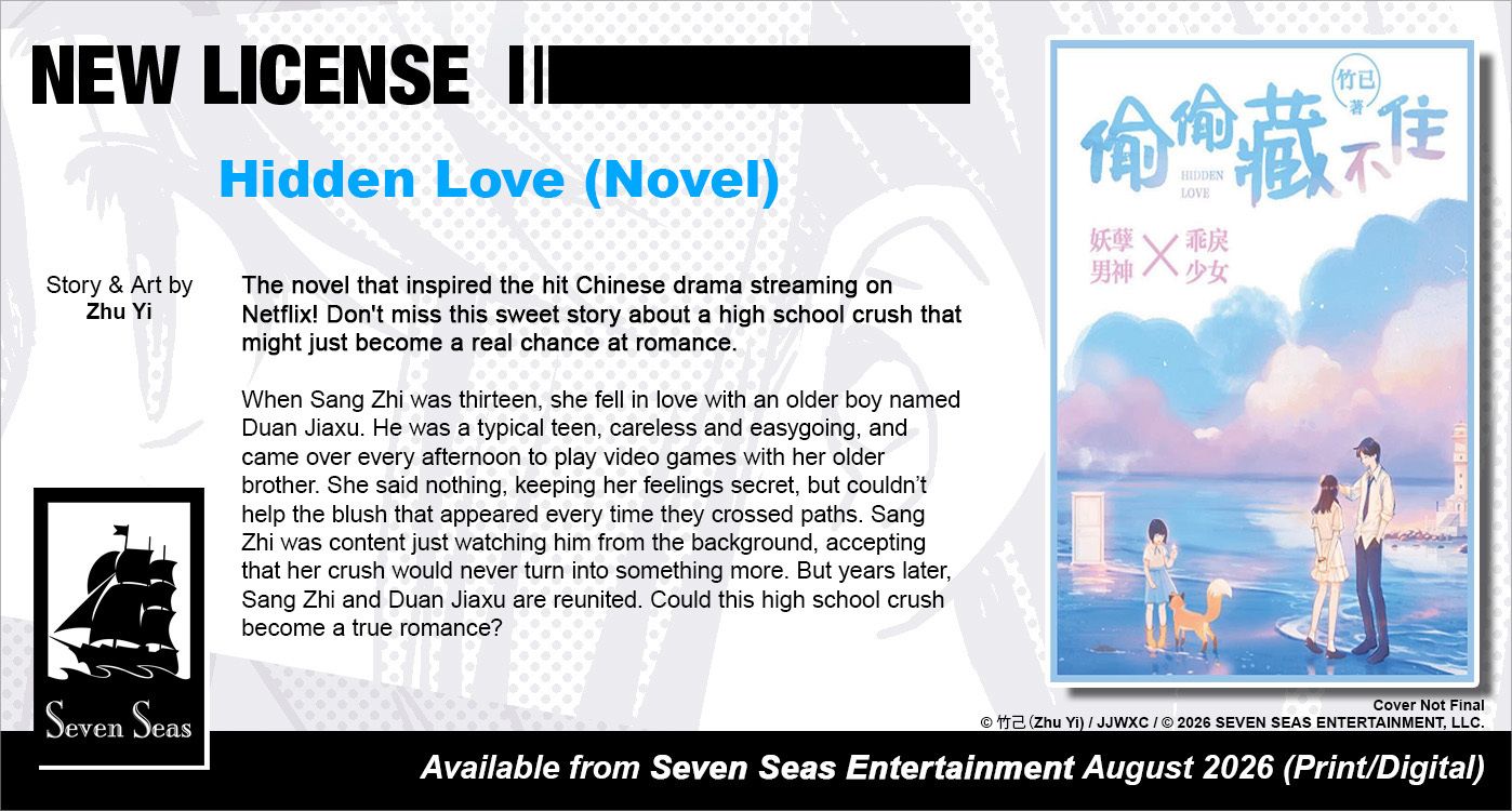 Brand-new license announcement! HIDDEN LOVE (NOVEL) by Zhu Yi. The novel that inspired the hit Chinese drama streaming on Netflix! Don’t miss this sweet story about a high school crush that might just become a real chance at romance. sevenseasentertainment.com/2025/10/01/sev