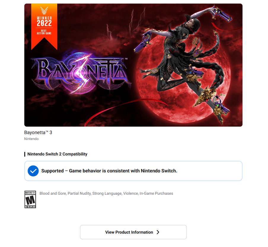 The site itself is simple. All you do is go to it via the link below, and then type in the game that you want to play on the Nintendo Switch 2! Want an example? Well, I’m a fan of the Bayonetta franchise, so I typed in the third game and got this result: