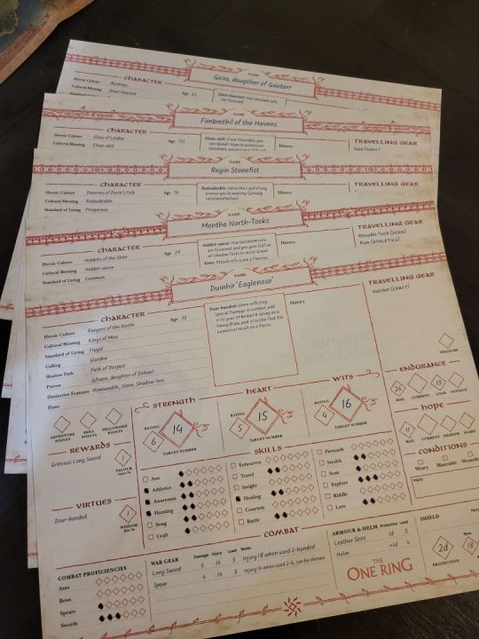 The system uses The One Ring’s d12 + d6 dice pool, where players roll a Feat Die alongside a number of Success Dice equal to their skill. Gandalf runes mean automatic success. Sauron’s Eye introduces spells doom. It’s simple, readable, and loaded with thematic weight.
