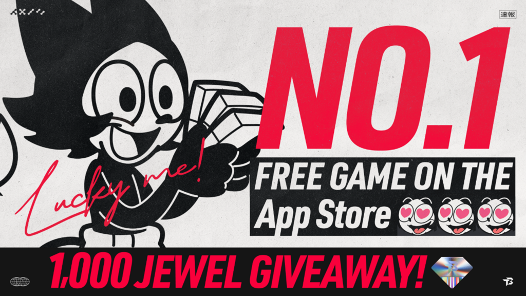 In commemoration of ranking No.1 on the Japanese AppStore free games chart, all logged-in game users will receive 1,000 Jewels and 1,000 BEAST gacha points as a gift.
