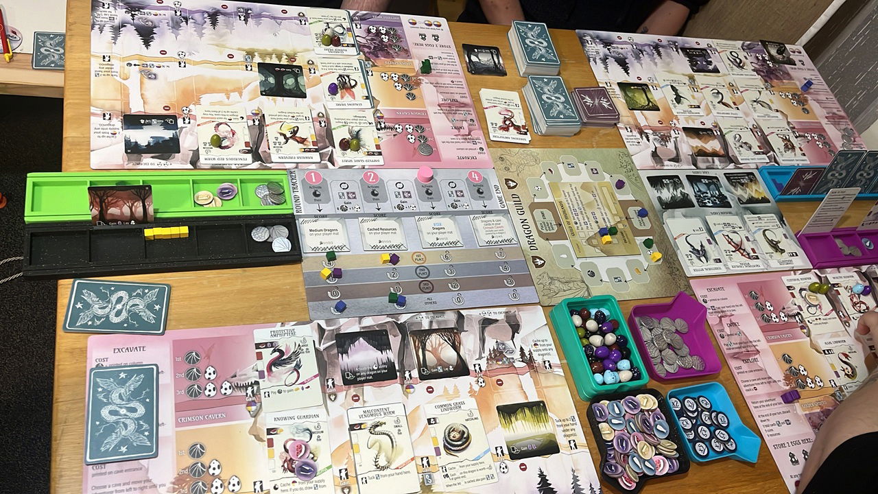 Early turns often feel methodical as you excavate caves and gather resources, but by the end of the first round, your sanctuary begins to take shape. A few dragons will be perched in their caves, abilities start to trigger, and you get the first glimpse of the engine-building potential that makes Wyrmspan so rewarding. From the moment you start, every choice feels meaningful, and the game quickly draws you into its magical, dragon-filled world.